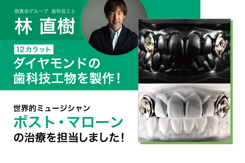 Naoki Hayashi, a dental technician of the Tokushinkai Group, was involved in the dental treatment of the world-famous musician Post Malone, which attracted attention. In this case, at Post Malone's request, diamonds were embedded in both upper canines and the upper jaw.