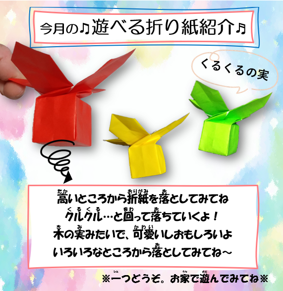 We have origami toys handmade by nursery teachers for you to play with.